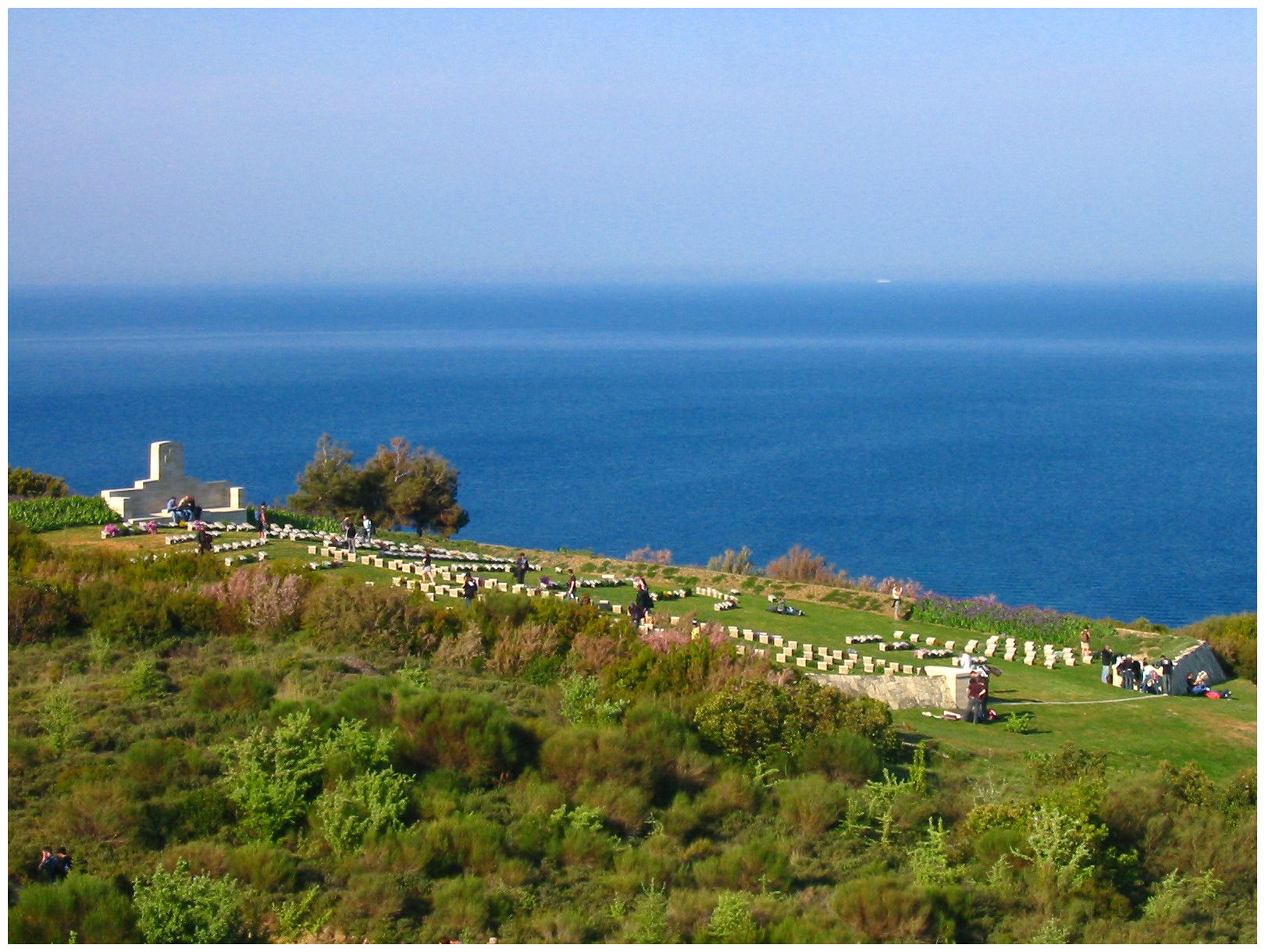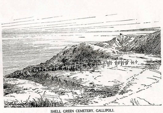 The combined Australian and New Zealand Army Corps, the "Anzacs", were landed at what became, later, known as "Anzac Cove", which is a small and narrow stretch of beach with steeply rising, barren land, open to snipers higher up, with no cover except for the many gullies which scored its surface, up and over which the men would have to climb to get off that beach - and about a mile north of where they were supposed to have been landed. It′s thought that the wrong place was due to a navigational error – whatever the reason, it was pretty disastrous for the Anzacs.