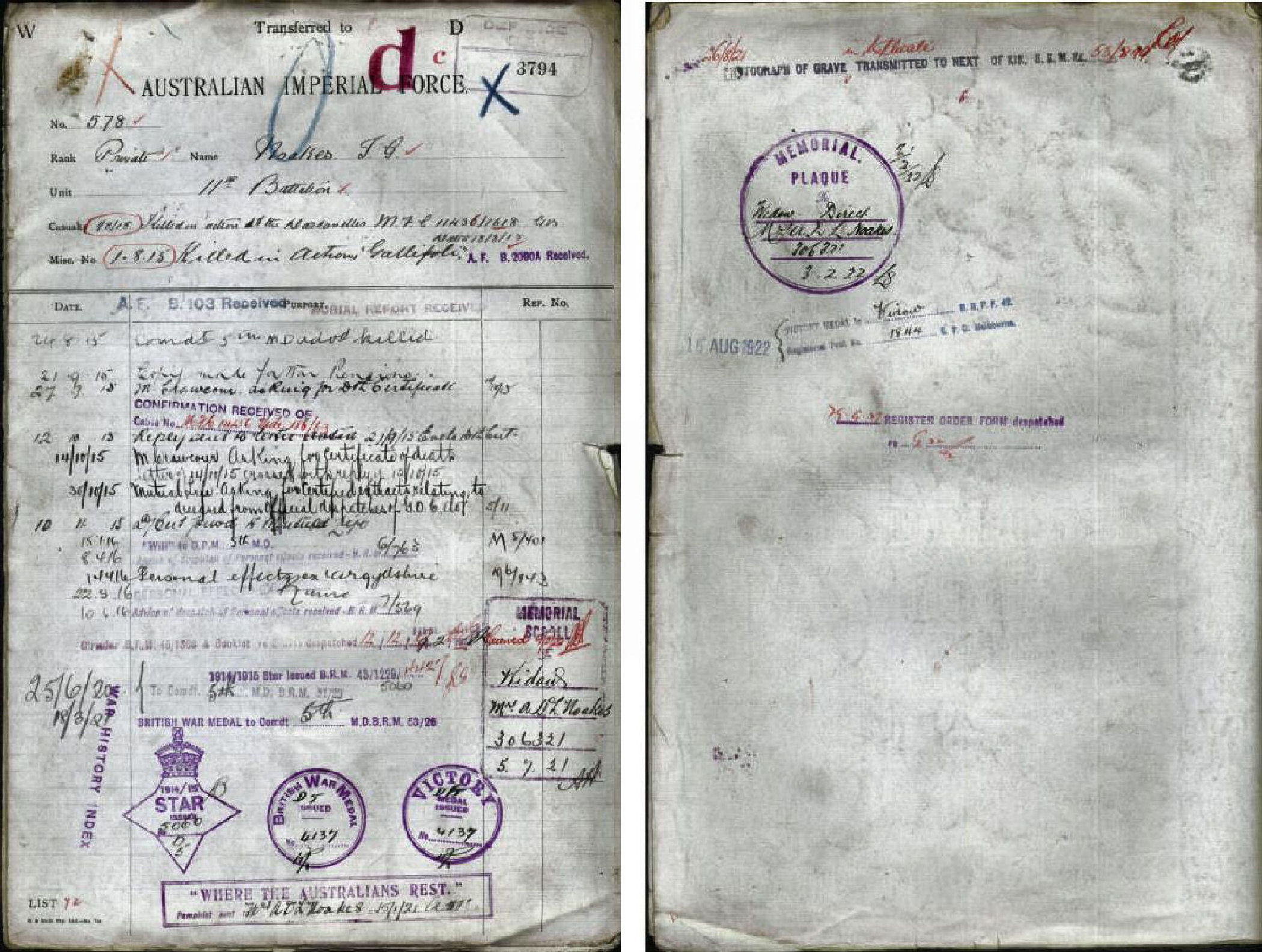 "Where the Australian′s Rest" – The Australian Government, realising that most next of kin would never be able to visit the grave of those they had lost, produced a booklet which was sent with the soldier′s medals. It gives a description of the problems that those who carried out the burials had to face and sketches of the "cemeteries" as they were at the time of the publication of the booklet, long before the Commonwealth War Graves Commission came into existence.